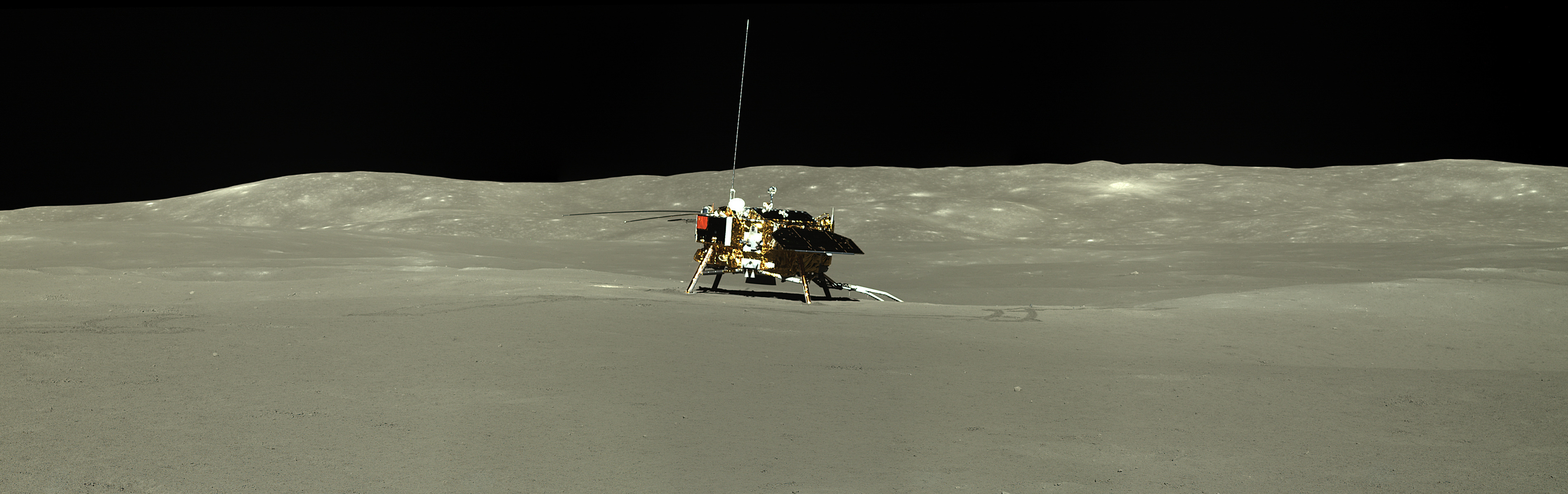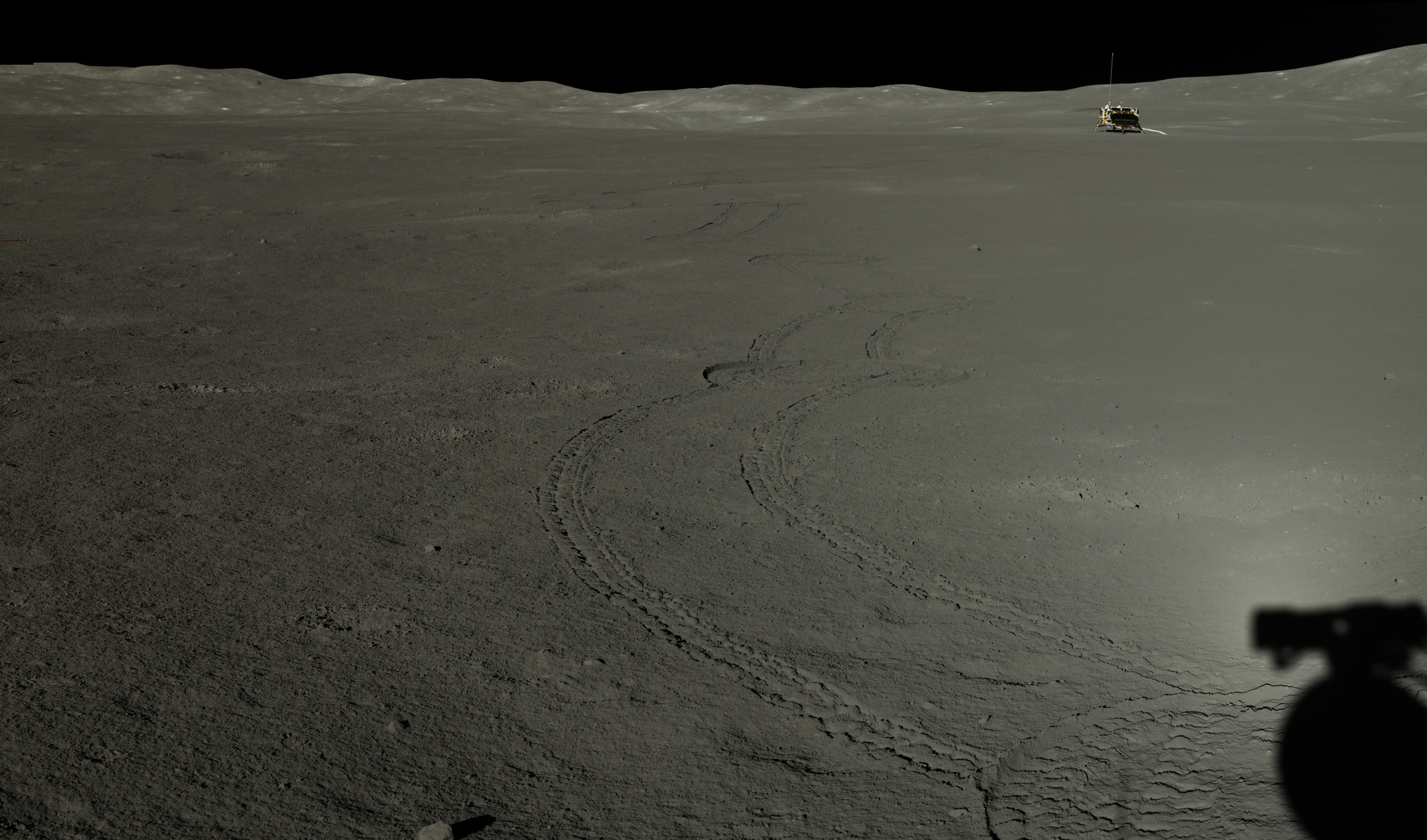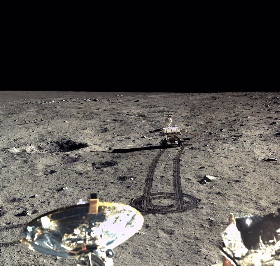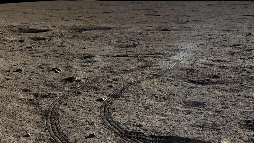 ![]() Ровер Юйту-2 смотрит в сторону посадочного модуля. Изображение обработано.