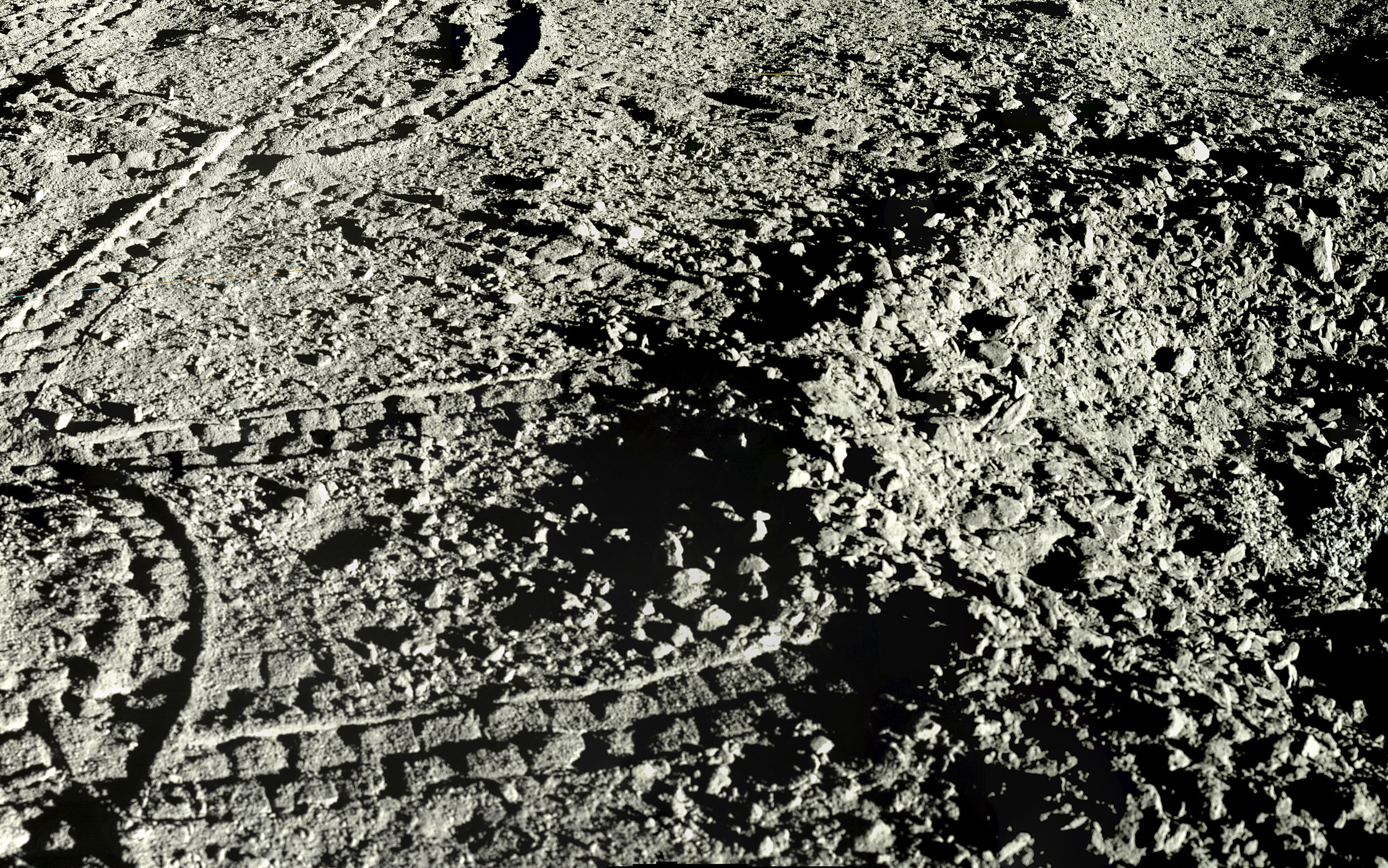 ![]() Луноход-2 — фото лунной поверхности и следы оставленные на ней луноходом