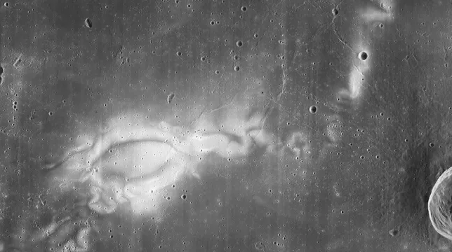 ![]() Фото вихря Рейнер Гамма на Луне сделанное широкоугольной поляризационной камерой лунного орбитального аппарата Данури.