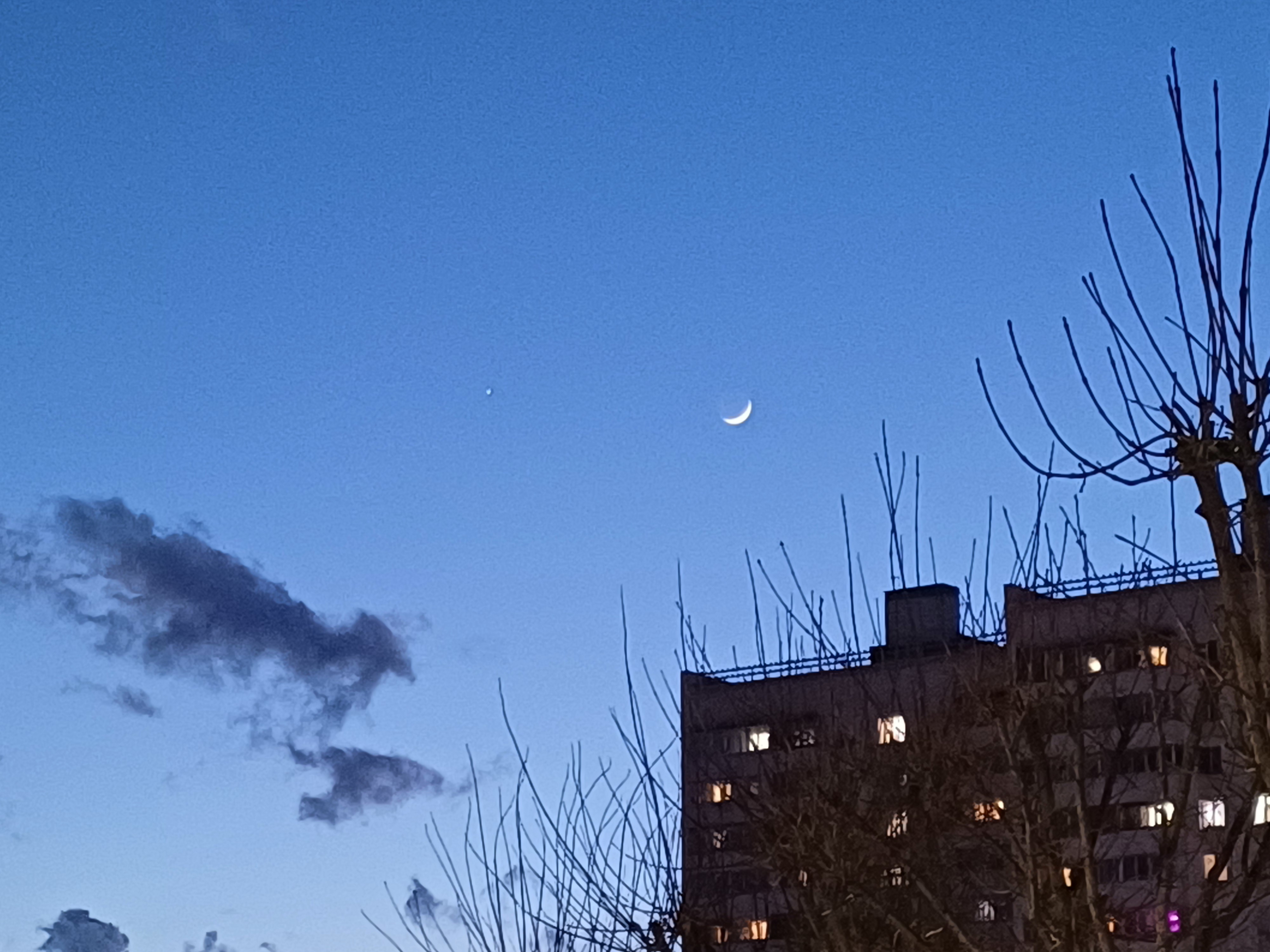 ![]() Лунный месяц на небе. Авторское фото. 10 апреля 2024.