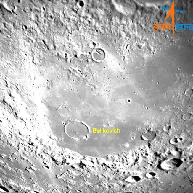 ![]() Область обратной стороны Луны с кратером Белькович. Снимок сделан с LHDAC камеры Чандраян-3 19 августа 2023 г.