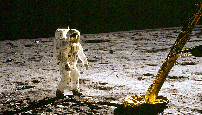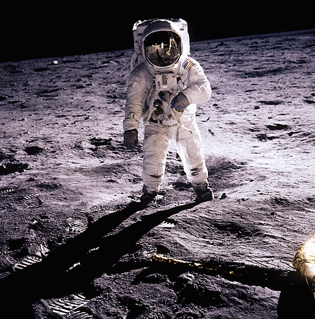 ![]() Аполлон-11. Астронавт Эдвин Олдрин на Луне. Снимок сделал астронавт Нил Армстронг.