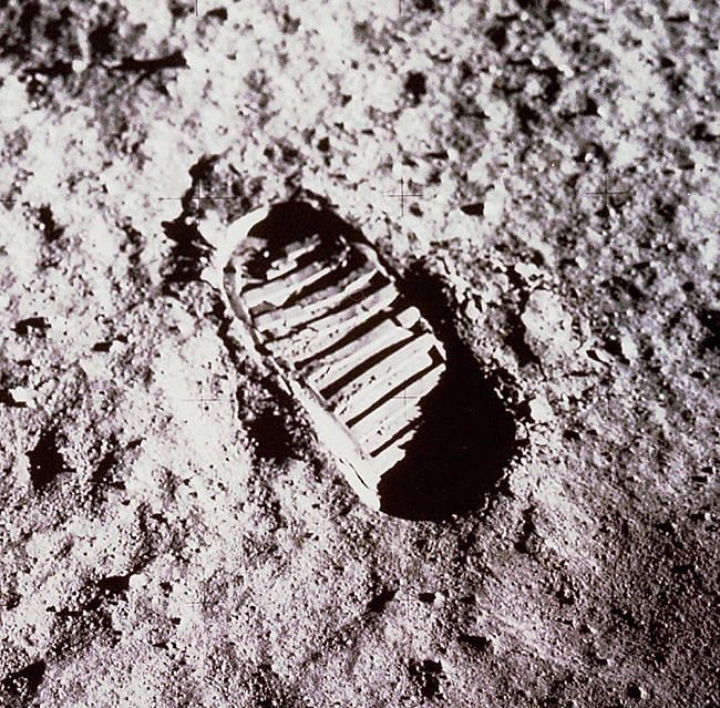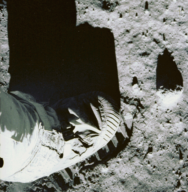 ![]() Аполлон-11. Изображение следа космонавта на Луне.