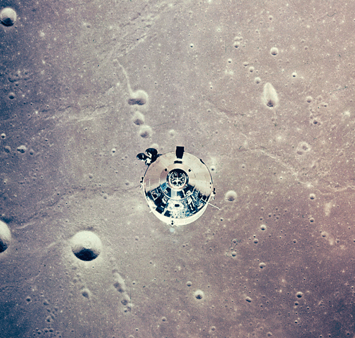 ![]() Командный модуль Аполлона-11 над Луной после отделения.
